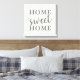 Home Sweet Home Home Sweet Home com fundo de impressão de burlap branco.