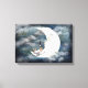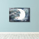 Homem na Lua lendo um livro A canvas de brilho de Zazzle é feita de uma mistura de algodão-poli sem aditivos e apresenta um revestimento especial receptivo a tinta que protege a superfície impressa de fissuras quando esticada. Feita com tecelagem apertada, ideal para qualquer fotografia ou arte fina, a nossa canvas de brilho instantâneo e seco produz impressões que são resistentes ao apagão por 75 anos ou mais.