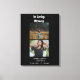 Honre seu ente querido com uma impressão em tela personalizada de foto memorial fúnebre. Em um design preto moderno e elegante. Esta impressão em tela fúnebre única "Em memória amorosa" é o presente perfeito para você, familiares ou amigos para homenagear os entes queridos. Personalize com 2 fotos de seus entes queridos favoritos, nome e datas. Veja 'personalize este modelo' para alterar fotos, inicial e nome. É melhor cortar suas fotos centralizadas antes de fazer o upload.