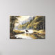 In this magnificent scene, a horse gracefully crosses a serene river. The water reflects the sky and the trees, creating an image of serenity and harmony between nature and the mighty animal.