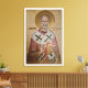 Icon of the Saint Nicholas. Beautiful design of the icon of the Saint Nicholas with a wood-colored frame and letters printed in gold.