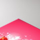 Impressão de tela com uma design gráfica de Natal brilhante e festiva. O texto diz Feliz Natal e Feliz ano novo. Projetado com um monte em forma de árvore de presentes com flocos de neve festivos, estrelas, bausolas de natal e faíscas brilhantes. Agulhas de pinheiros e ilustração em forma de árvore também estão incluídos nesta imagem de feriado. O fundo é uma cor rosa avermelhada vibrante.