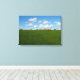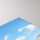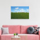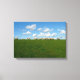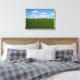 Ovelhas em fileira caminhando sobre uma grama verde e céu azul na impressão de fundo.