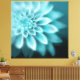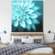 100% de arte original assinada pintada à mão. Apresenta uma dália de solteiro em tons de turquesa, preto e branco, posicionados fora do centro, pintados de uma forma "de foco suave".