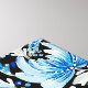 Uma pintura espantosa no estilo tradicional de Petrykivka apresenta flores azuis e azuis delicadas que florescem vibrantemente contra um fundo negro profundo. Cada pétala é meticulosamente detalhada, mostrando incríveis pinceladas e padrões ornamentais típicos desta arte folclórica ucraniana. O design floral irradia elegância e harmonia, com arranjos simétricos e gradientes sutis que destacam a habilidade do artista. O pano de fundo escuro intensifica as cores, fazer em que as flores parecem quase luminosas, enquanto elementos ornamentais menores como folhas e tendões conferem sentido de movimento e vida à composição.