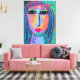 O meu retrato abstrato digital colorido de uma mulher com cabelo azul impresso na canvas