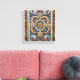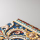 Colorful floral patterned frieze with intricate details, featuring a symmetrical arrangement of flowers, leaves, and ornamental elements in a vibrant palette of blues, reds, yellows, and whites.