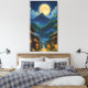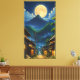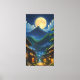 A lua brilha sobre uma pequena cidade em Java, Indonésia, com uma montanha grande ao fundo.