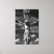 Foto preta e branca, retratando a crucificação de Jesus Cristo. Bonitos tons e sombras.