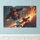 Uma canvas eletrizante mostrando um esqueleto se fragmentando em um skate, decolado em ruas corajosas. As chamas trilham debaixo do skate enquanto desliza, acrescentando uma sensação intensa de movimento e calor à cena. Esta dinâmica trabalho de arte funde a cultura skate com visões sinistras e rebeldes, perfeitas para fãs de arte urbana e estilo de rua.