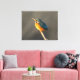Um rei-pescador olhando para a distância, exibido lindamente em uma canvas esticada.