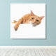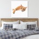 Retrato de uma taça laranja de taça doméstica de gato deitado sobre um fundo branco com pata cortada sobre uma mesa