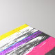 Legal tendência vibrante abstrato com faixas coloridas, tribal grunge, traçadores de tinta padrão, rosa quente, amarelo vibrante, azul, cinzas, branco, preto. Personalize-o com seu nome de palavra ou frase favorita clicando no botão personalizar e adicionando texto, escolha a fonte e a cor do texto. Impressão de imagem