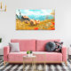 Alguns leitões em uma área cercada por grama, tocando, cercados por um jardim floral, uma fazenda à distância