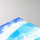 Arte digital que fiz das ondas do oceano na minha mesa. Bonito ondas de espuma branca numa praia arenosa com uma citação bonito sobre o oceano.