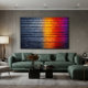 Um muro de tijolos ganha vida com um vibrante gradiente que varia de cinza frio a vermelho ígneo. A obra celebra contrastes e transições, revelando uma beleza oculta em superfícies urbanas e transformando o ordinário em uma explosão de cor e emoção visual.