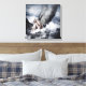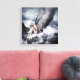 linda loira com asas de anjo sentada sobre uma rocha no mar em tempestade