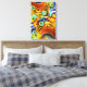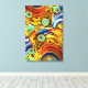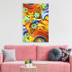Uma vibrante explosão de cores amarelas e azuis e forma as entrelinhas, criando uma composição enérgica de abstrato. Roteiros, círculos e linhas se sobrepõem a um senso dinâmico de movimento e ritmo. A pintura ficará boa na posição horizontal ou vertical.