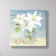 © Danhui Nai / Wild Apple. A imagem mostra lírios brancos e conchas colocados ao longo da costa. A areia da praia é branca contra um legal mar azul.