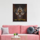 Uma imagem fractal parecida com a cabeça de um lobo num fundo escuro. Adicione seu próprio texto.