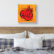 canvas 8x8 Imagem digital de um par de luvas de boxe vermelhas sombreada e esboçada em preto. As luvas são parcialmente enquadradas por um contorno preto avermelhado na forma de um quadrado.Na moda design. Fundo é uma textura de cor d'água amarelada ouro.