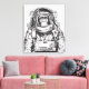 Este design apresenta um retrato de um chimpanzé em uma roupa de astronauta.