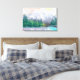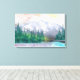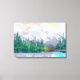 Uma cena de montanha com lago e floresta. Tem o aspecto de uma aquarela.