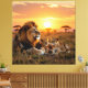 Eine stolze Löwenfamilie ruht gemeinsam in der afrikanischen Savanne unter einem warmen Sonnenuntergang. Das Bild symbolisiert Stärke, Zusammenhalt und natürliche Schönheit. Ideal für Tierliebhaber, Naturliebhaber oder als kraftvolles Dekorationsmotiv.