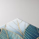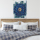 Esta pintura impressionante apresenta uma flor grande, azul, com pétalas douradas. A flor é cercada por folhas brancas delicadas, criando um contraste cativante. Esta peça certamente adiciona um toque de elegância e sofisticação a qualquer casa.