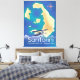 Ilhas Santorini Cyclades, mapa do mar Egeu, poster de viagens de arte impressão.