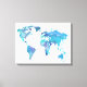 Impressão Em Tela Mapa do Mundo Azul da Aquarela