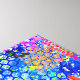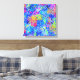 Esta canvas esticada tem todas as cores vivas dos peixes salgados. Vários tons de azul são misturados com amarelo, laranja, roxo, verde limão, rosa, aqua, preto. As várias texturas e opacidades dão a profundidade do design.