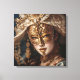 Esta impressão em tela retrata uma mulher misteriosa usando uma máscara dourada em um baile de máscaras.