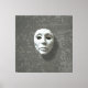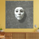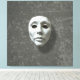 A CLAY MASK AGAINST A GREY TEXTURED BACKGROUND