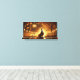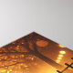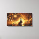 A cena retratada na imagem é um cenário sereno, quase mágico à noite. Uma mulher com um vestido elegante e fluente fica em um caminho úmido e reflexivo, iluminado pelo brilho quente das luzes da rua que alinham o caminho. A atmosfera é sombria, acrescentando uma qualidade sonhadora à cena, com nevoeiro suave envolvendo os arredores. O caminho se curva suavemente, levando o olho até a distância, e é enfeitado com folhas caídas, melhorando a vibração do outono. Um pássaro solitário está no caminho, adicionando ao ambiente tranquilo. A silhueta da mulher contra o brilho cria um contraste impressionante, enfatizando sua forma graciosa.