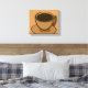 Manhãs cedo, dias chuvosos, uma xícara de café em um café confortável. O "Café, por favor!" design extra grande apresenta um solteiro de café a vapor num fundo castanho aconchegante num estilo retrô moderno de médio.