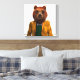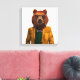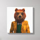 Esta design apresenta um retrato de ursos vestidos em óculos e jaqueta.