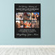 Elegante canvas de tributo em memória apresentando 6 preciosos de seu ente querido perdido, o texto "em memória amorosa", seu nome, datas de nascimento/morte, e a lembrança dizendo "sua presença nós perdemos, sua memória que nós valorizamos, te amando sempre, esquecendo você nunca".