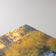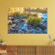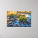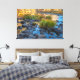 Uma fotografia de sereno paisagismo captura um rio Merced raso em Yosemite cheio de rochas lisas e escuras e tufos de grama verde e ouro no final do outono. A água reflete o céu e as árvores ao redor, criando um efeito espelho. O fundo apresenta uma linha de árvores com folhagem de outono, adicionando calor à cena. O humor geral é pacífico e natural, mostrando a beleza de um ecossistema fluvial.