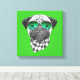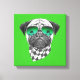 Este design apresenta um retrato de um pingue-pongue com óculos escuros e um cachecol preto e branco com verificação.