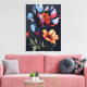 Este design cativante apresenta flores abstrato, vibrantes, contra um dramático fundo azul de meia-noite. Uma peça única e atraente que certamente adiciona um toque de sofisticação moderna a qualquer casa ou escritório.