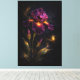 Set against a deep indigo-to-black backdrop, this graceful iris rises with soft, flowing petals in rich plum and magenta tones. Subtle gold accents and drifting flecks of light create a sense of depth and atmosphere, while a tiny glowing firefly adds a delicate touch of enchantment.