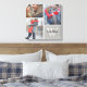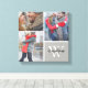 Belo impressão de canvas de arte personalizada com 3 fotos de sua família personalizada organizadas em uma coleção de fotos quadradas com seu nome de família e monograma no canto inferior junto com data estabelecida ou outro texto personalizado abaixo. Adicione suas fotos da família favorita e crie uma bela impressão de canvas. Use as ferramentas de design para escolher qualquer cor de fundo, editar as fontes de texto e as cores e adicionar mais fotos para criar uma de tipo design. presente de excelente para a família, amigos, pais e avós!
