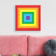 Este design consiste em 6 quadrados coloridos arco-íris dentro aninhados um ao outro. As cores de fora para o centro são: vermelho, laranja, amarelo, verde, azul e roxo. Também pode ser vista como uma pirâmide ou pirâmide invertida, a cor púrpura do centro que dá efeito de profundidade. Ele vai parecer excelente na sua canvas e vai adicionar um toque original contemporâneo à sua decoração. O quadrado central tem um monograma inicial personalizável impresso em uma fonte branca moderna. Substitua o inicial padrão pelo seu ou sinta-se à vontade para excluí-lo. Este design é amigo do LGBTQ+.