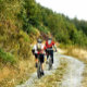 Dois homens pedalando nas colinas de Gales.