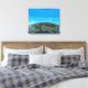 Um desenho abstrato azul vibrante de um topo de montanha e do céu.