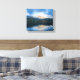 Canvas de arte impressão com uma bela foto da natureza. Montanhas no fundo com um lago calmo no primeiro plano. Fotografia serena e relaxante.