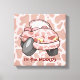 Carro de animação com padrão de vaca rosa. Texto personalizado.