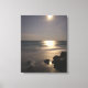 Stunning beach photography with the rising moon casting a cool glow on the ocean while the rocks and surroundings are cast in shadows.