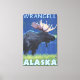 Moose at Night - Wrangell, Alaska - Poster de Viagens vintage foi criada em 2007. Esta imagem mostra cenas de Wrangell, AK.